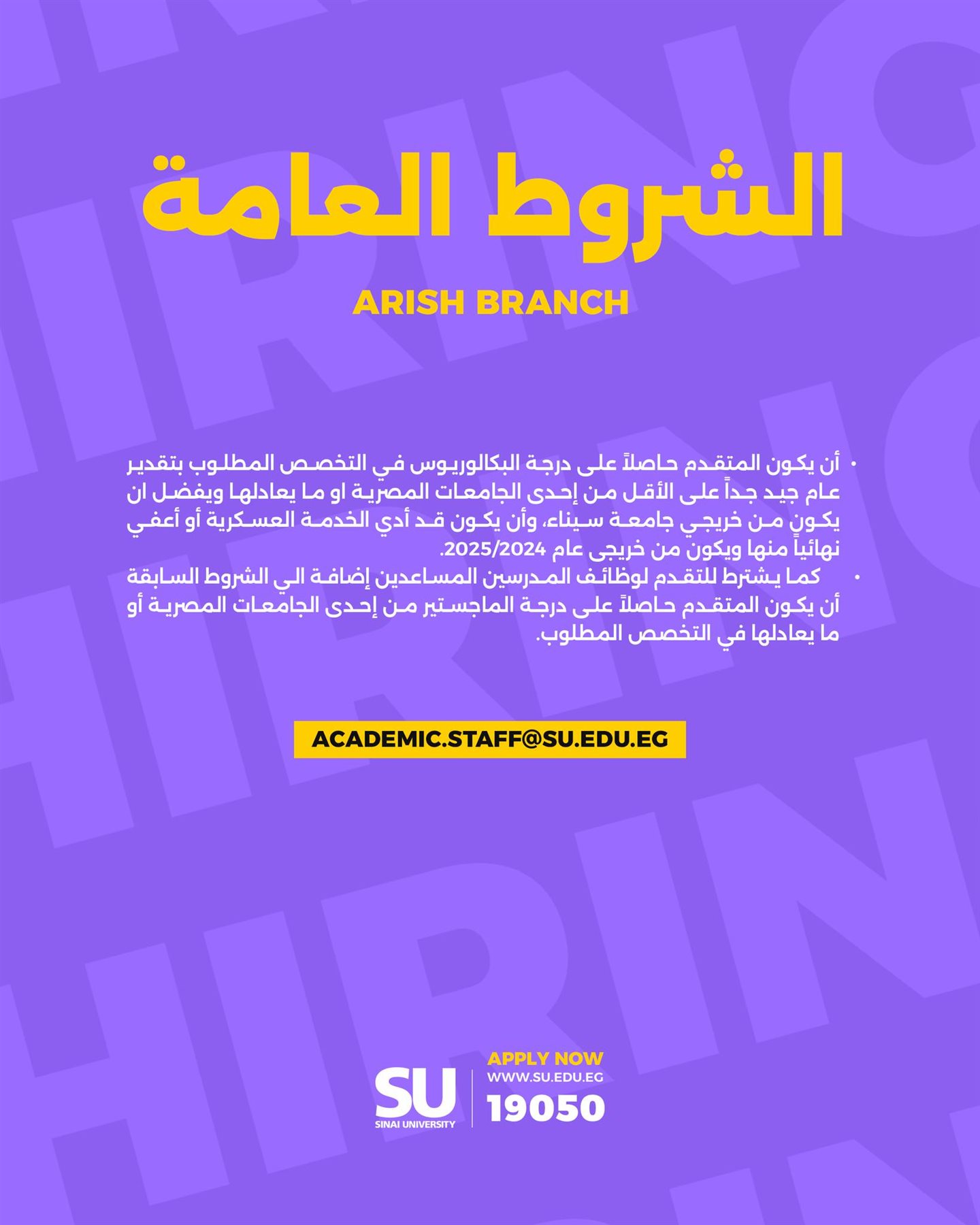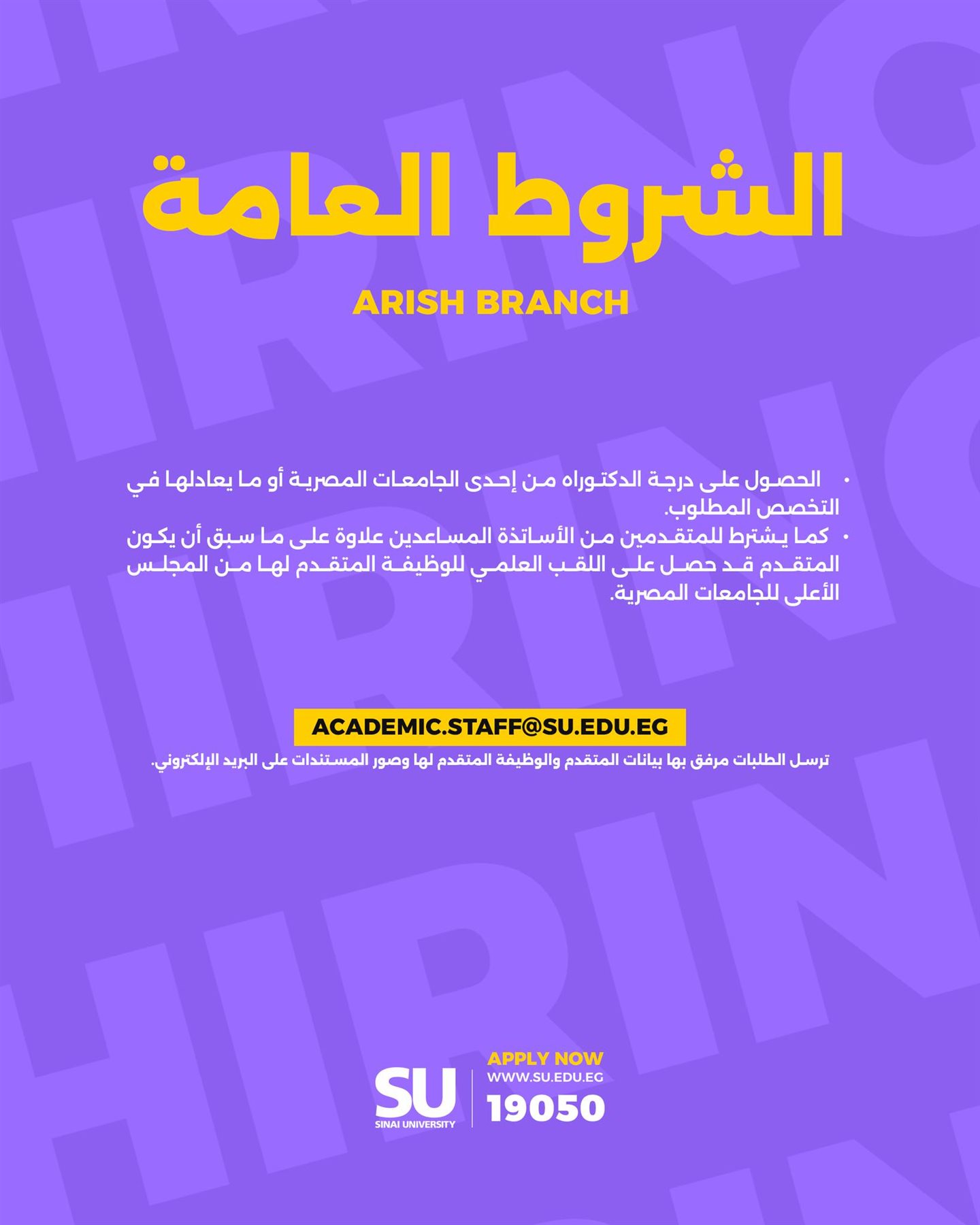 - الشروط المطلوبة في وظائف جامعة سيناء