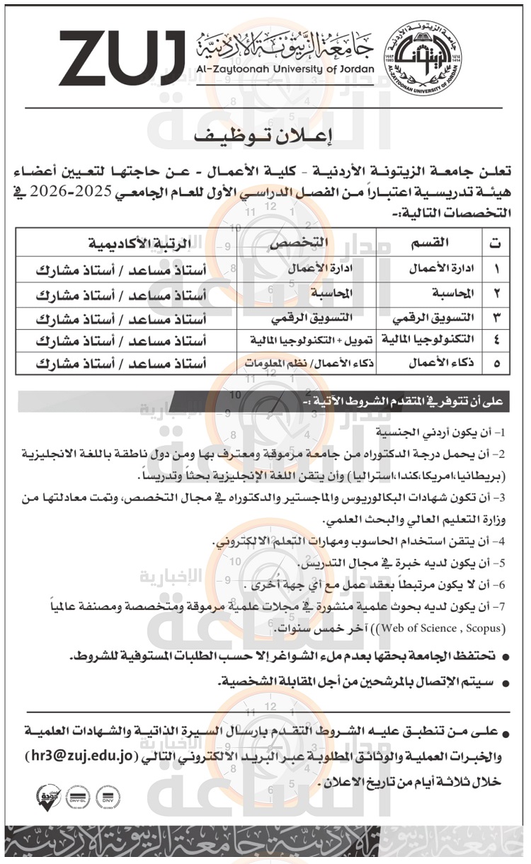 - أعضاء هيئة التدريس وظائف جامعة الزيتونة