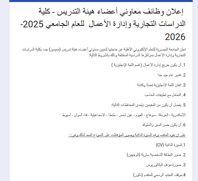 - وظائف معيدين في الجامعات الخاصة في مصر 2024