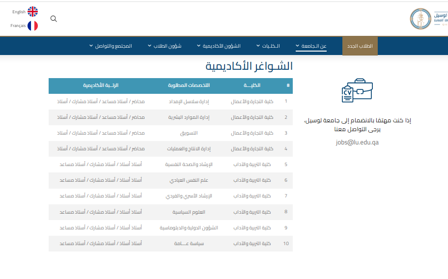 ودعت الجامعة جميع الراغبين في التقديم إلى إرسال سيرهم الذاتية وكافة المستندات المطلوبة عبر البريد الإلكتروني المخصص للتوظيف: [email protected].