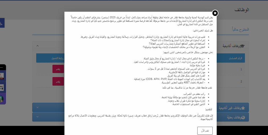 لمطالعة إعلان وظيفة جامعة ظفار العمانية عبر الموقع الرسمي والتقديم اضغط هنا