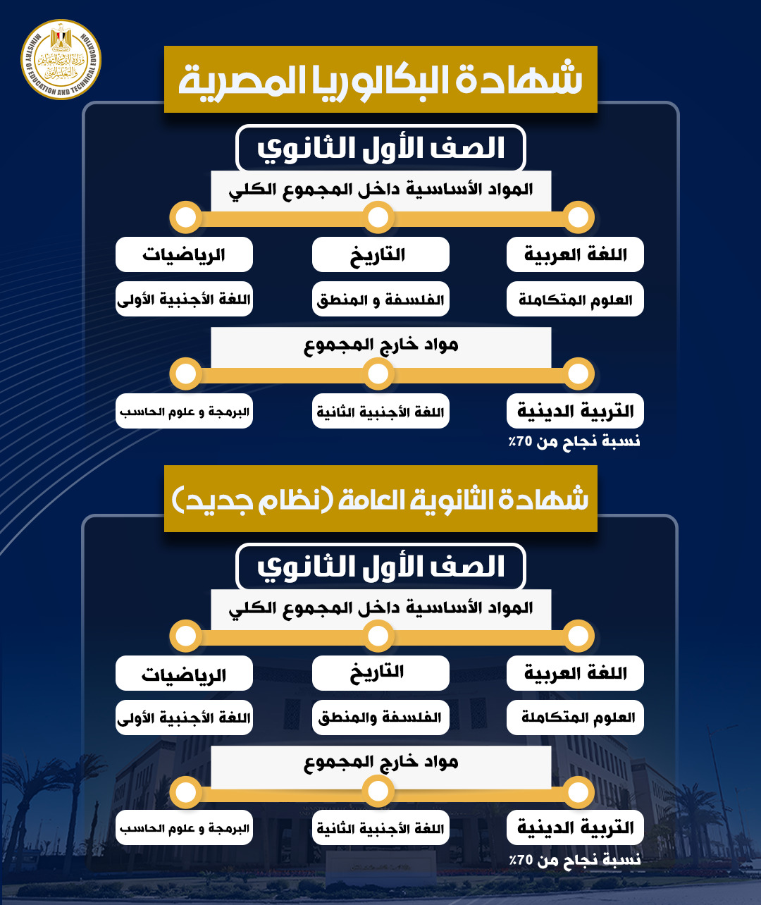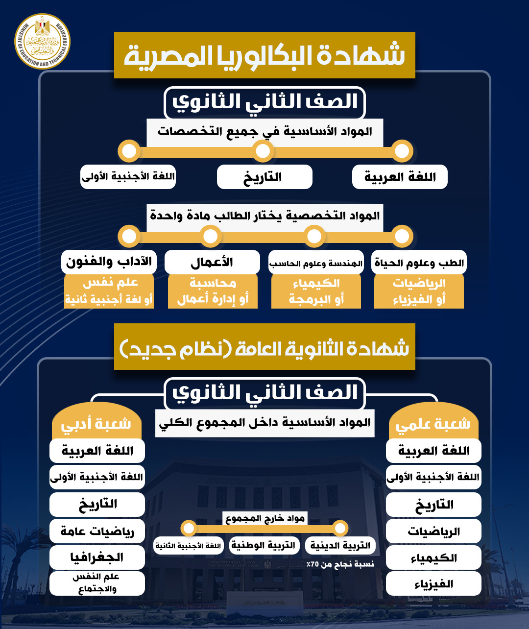المواد الدراسية في كل من نظام شهادة البكالوريا المصرية ونظام شهادة الثانوية العامة