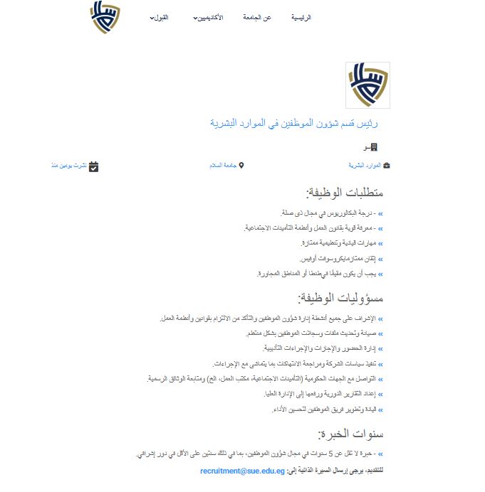 طريقة التقديم على وظائف جامعة السلام