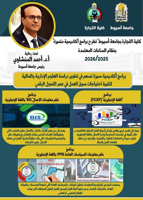 أعلنت كلية التجارة جامعة أسيوط عن إطلاق حزمة جديدة من البرامج الأكاديمية المتميزة للعام الجامعي 2025/2026، وذلك ضمن خطة الجامعة لتطوير التعليم الجامعي وتعزيز مكانتها بين الجامعات المصرية. وتؤكد جامعة أسيوط أن هذه البرامج الخاصة تهدف إلى رفع جودة التعليم وتلبية متطلبات سوق العمل المحلي والعالمي.