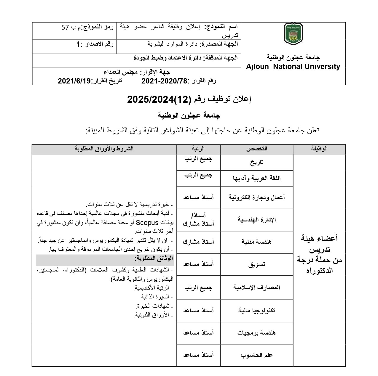 - أعضاء هيئة التدريس وظائف جامعة عجلون