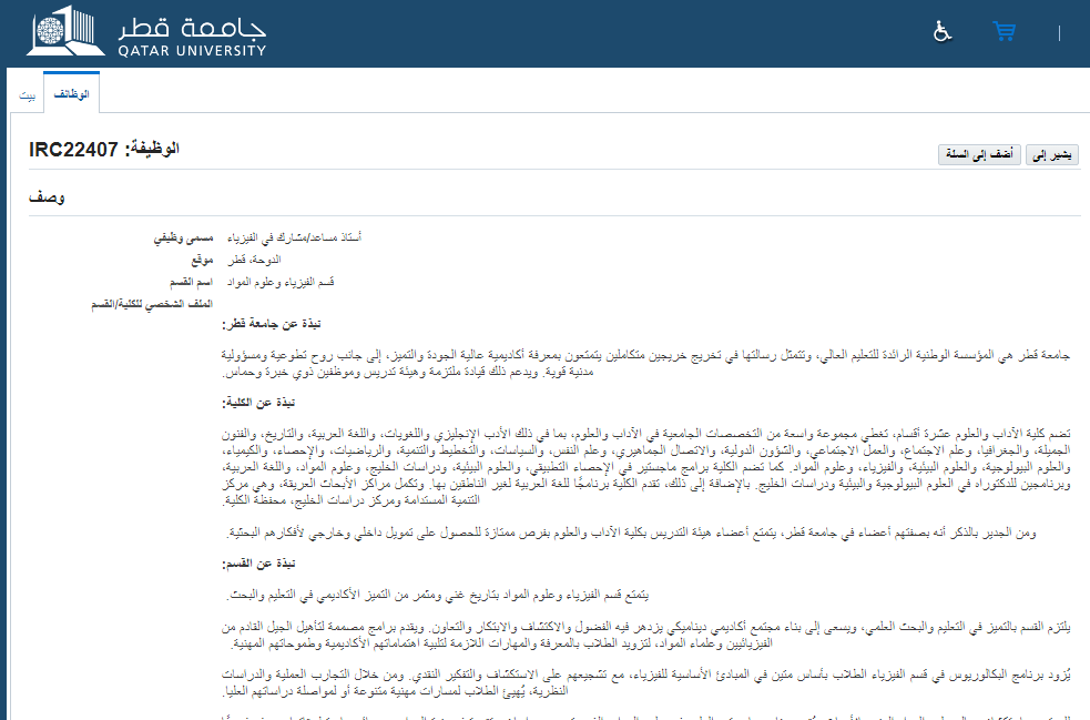 لمطالعة نص إعلان وظيفة جامعة قطر والتقديم اضغط هنا