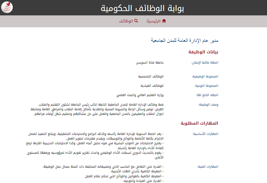 تفاصيل وظيفة مدير عام الإدارة العامة للمدن الجامعية