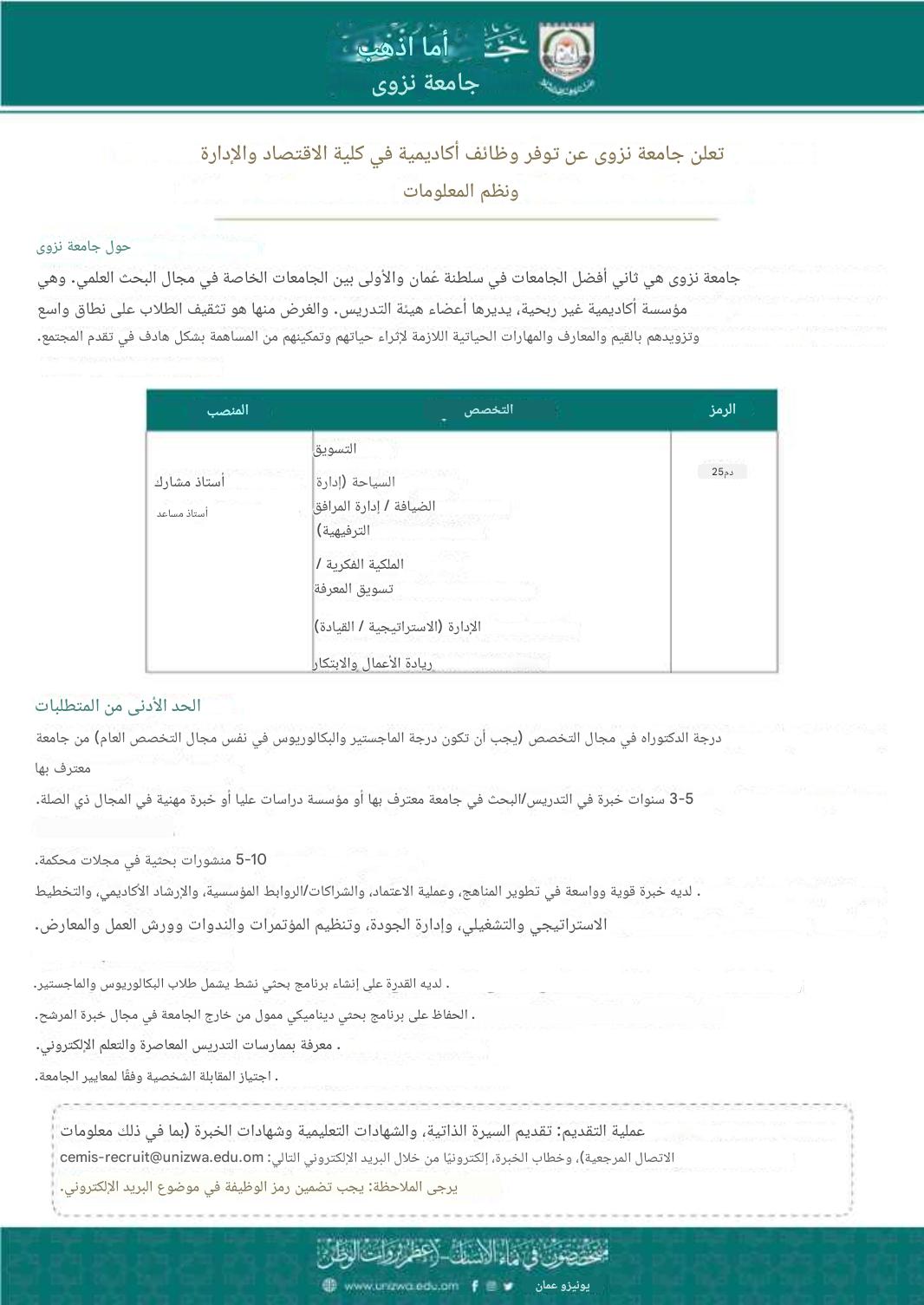 - أكاديميون وظائف جامعة نزوى