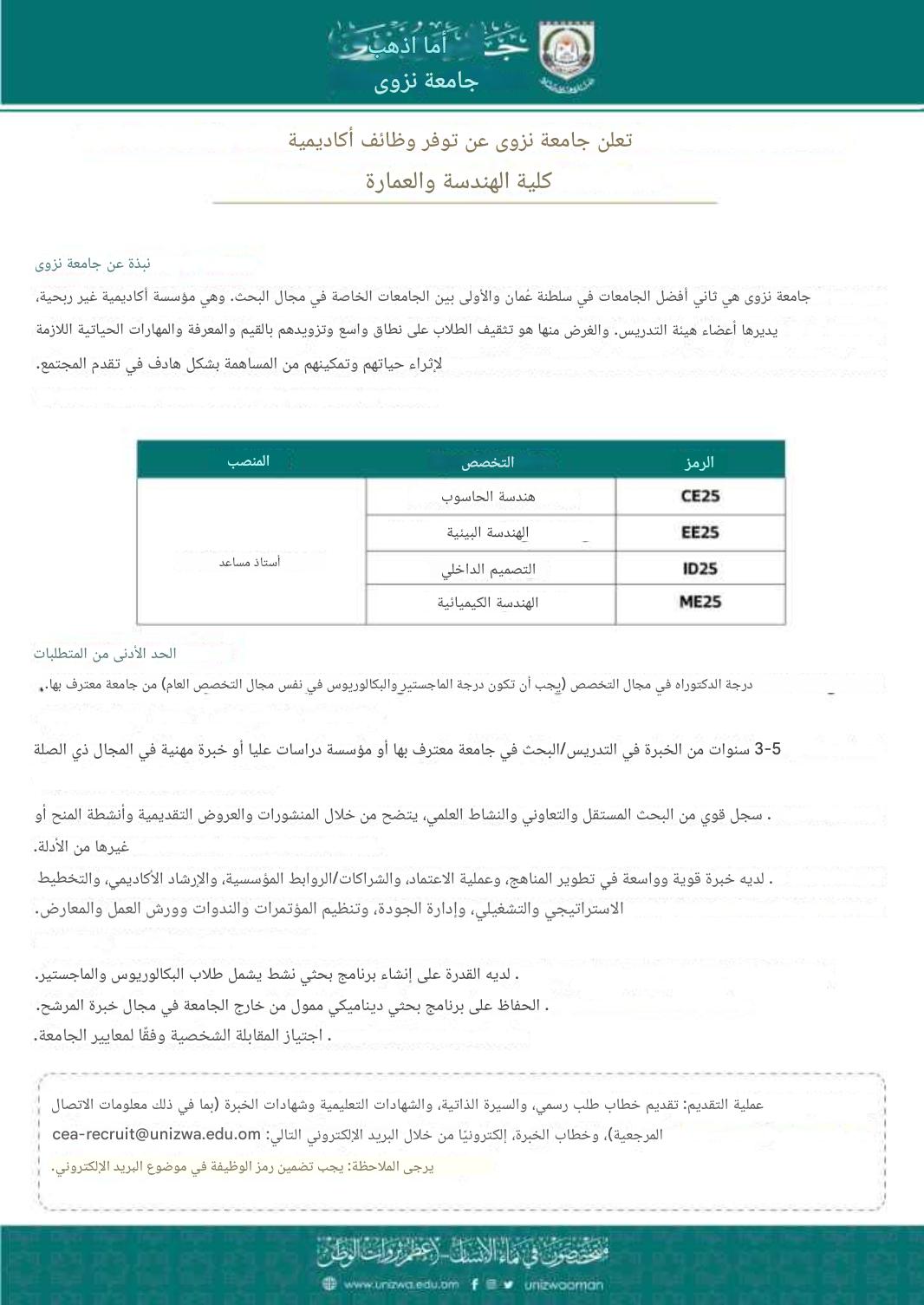 - وظائف شاغرة جامعة نزوي