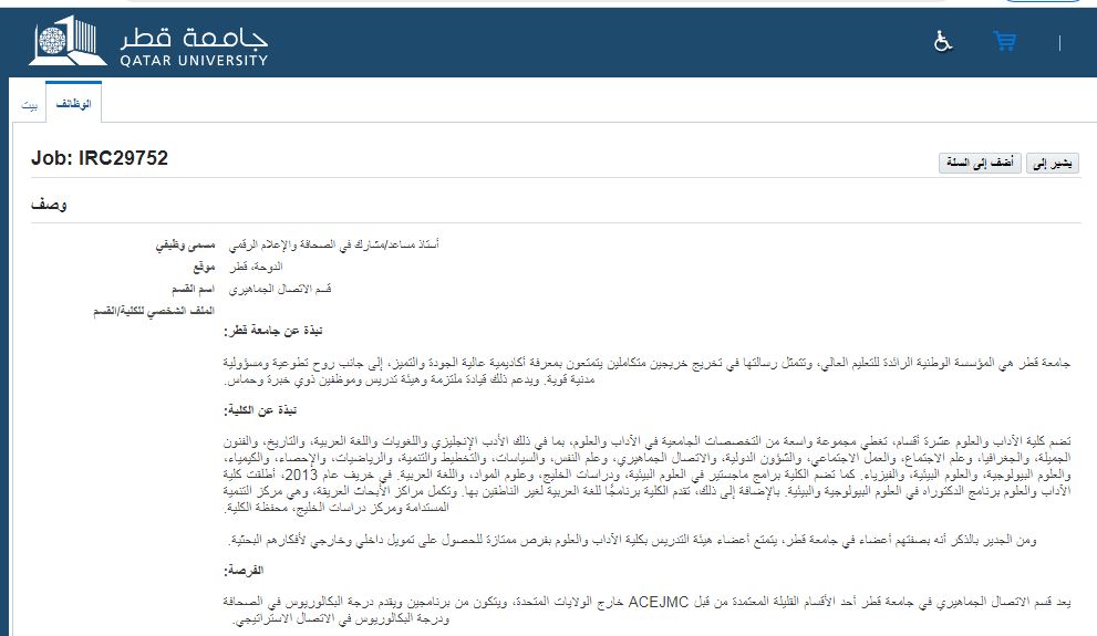 لمطالعة نص إعلان وظيفة جامعة قطر والتقديم اضغط هنا
