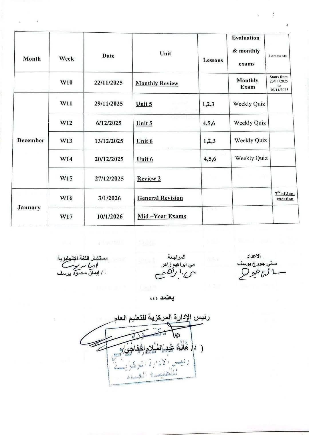 - توزيع منهج اللغة الانجليزية ترم أول لـ الصف الأول الإعدادي