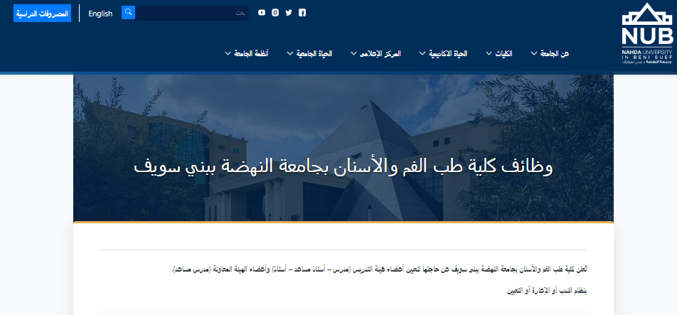 لمطالعة إعلان وظيفة جامعة النهضة عبر الموقع الرسمي والتقديم اضغط هنا