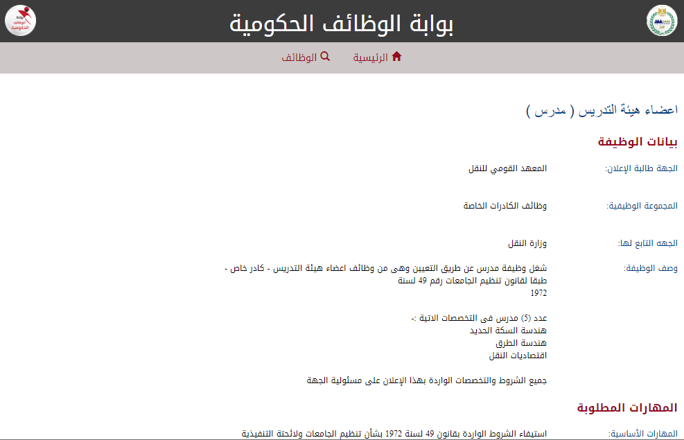 ويأتي هذا الإعلان استنادًا إلى أحكام قانون تنظيم الجامعات رقم 49 لسنة 1972 ولائحته التنفيذية وتعديلاته، بما يضمن اختيار أفضل العناصر الأكاديمية القادرة على المساهمة في تطوير منظومة التعليم العالي المرتبطة بقطاع النقل.