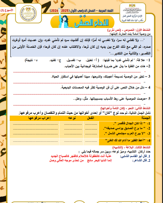 - رابط الآداء الصفي الأسبوع الثالث عربي أولى ثانوي الصف الأول الثانوي