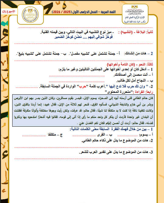 - اللغة العربية تقييم الأسبوع الثالث