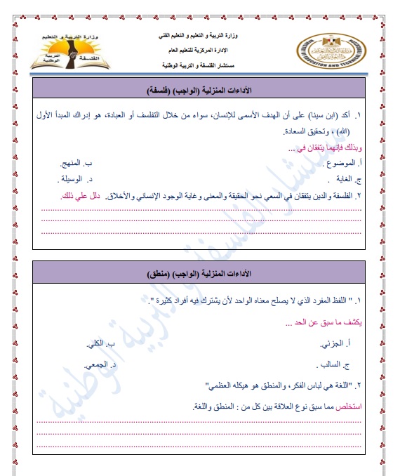 - مراجعات نهائية الفلسفة والمنطق