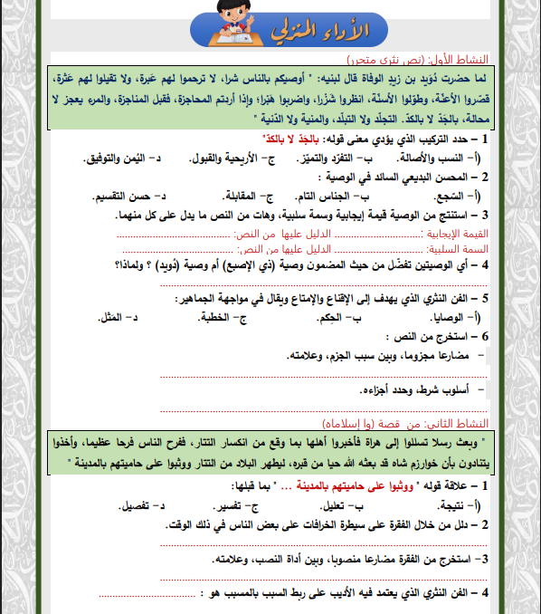 - ثانية ثانوي اللغة العربية تقييم الأسبوع الثالث