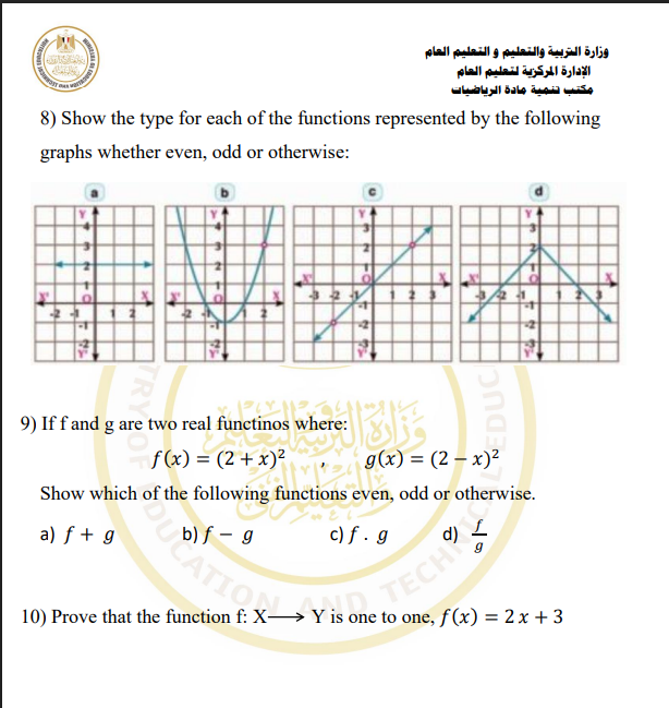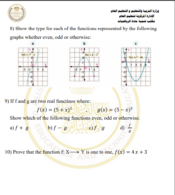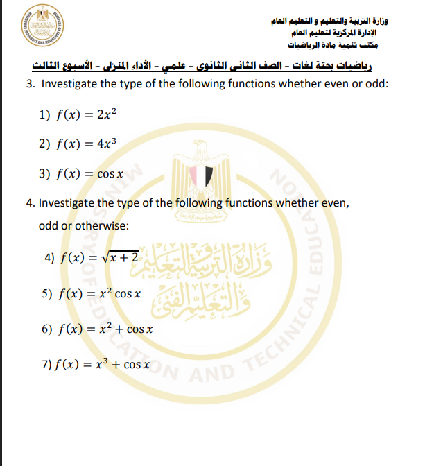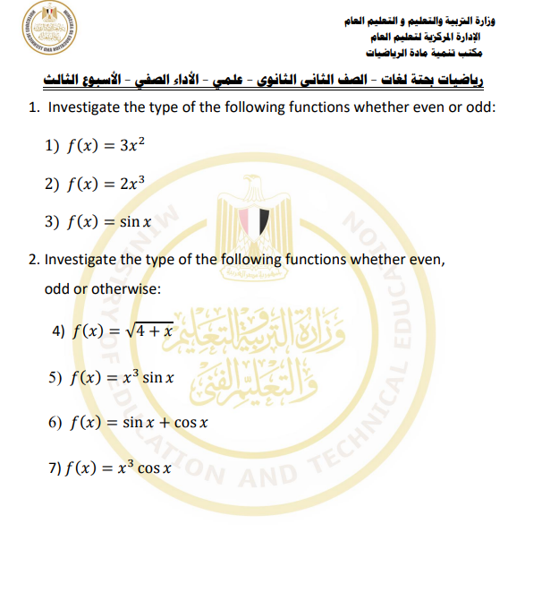 مراجعات نهائية.. أسئلة تقييم الأسبوع الثالث الرياضيات البحتة الصف الثاني الثانوي