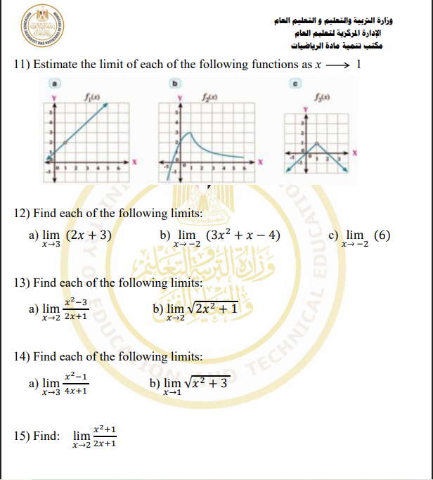 أسئلة تقييم الأسبوع الثالث الرياضيات البحتة لغات ثانية ثانوي