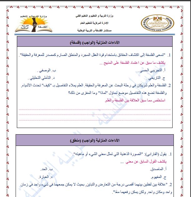 - مراجعات نهائيه امتحان الفلسفة والمنطق أولى ثانوي