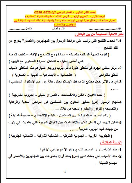 - الأسبوع الرابع تقييم ثانية ثانوي التاريخ