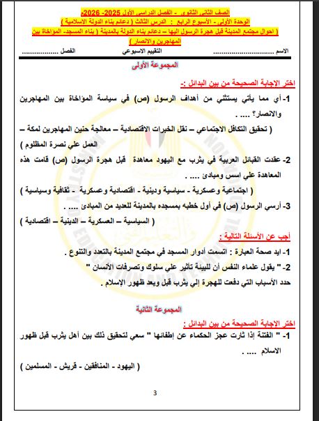 أسئلة تقييمات الأسبوع الرابع.. أسئلة تقييم الأسبوع الرابع التاريخ الصف الثاني الثانوي، للعام الدراسي الجاري 2025-2026، في مراجعات نهائية وتحميل أسئلة تقييم الأسبوع الرابع التاريخ الصف الثاني الثانوي، حيث يواصل موقع السبورة نشر مراجعة ليلة الامتحان من خلال تحميل أقوى أسئلة تقييم الأسبوع الرابع التاريخ، لطلاب وطالبات الصف الثاني الثانوي، من خلال مراجعات نهائيه، واستعراض جميع نظام أسئلة امتحانات التاريخ، وشرح مبسط، واستعراض لجميع أسئلة مادة التاريخ، عن طريق نشر العديد من الامتحانات، لطلاب وطالبات الصف الثاني الثانوي، في مراجعات نهائية، لن يخرج عنها امتحان آخر العام، ومن خلال متابعة مراجعات نهائية أعدها خبراء المادة في وزارة التربية والتعليم، وللدخول على تقييم الأسبوع الرابع من خلال هذا الرابط.. اضغط هناااااااااااا