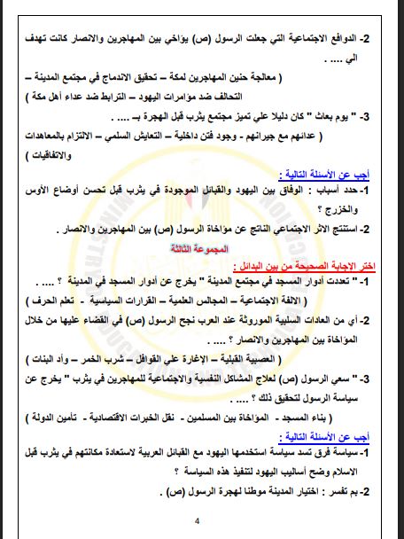 أسئلة تقييم الأسبوع الرابع التاريخ ثانية ثانوي