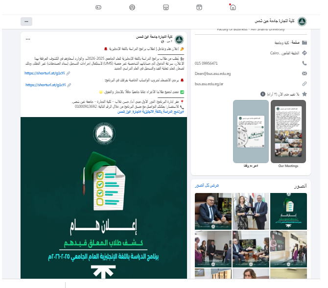 يُطلب من طلاب برامج الدراسة باللغة الإنجليزية للعام الجامعي 2025-2026م، والوارد أسماؤهم في الكشوف المرفقة بهذا الإعلان، سرعة الدخول إلى حساباتهم الشخصية عبر منصة (UMS) لاستكمال إجراءات التسجيل (سداد المستحقات) عبر النظام، وذلك لضمان إتمام عملية القيد والتسجيل في العام الدراسي الجديد