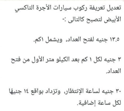 - 3 جنيهات لكل 1 كم بعد الكيلو متر الأول من فتح العداد.