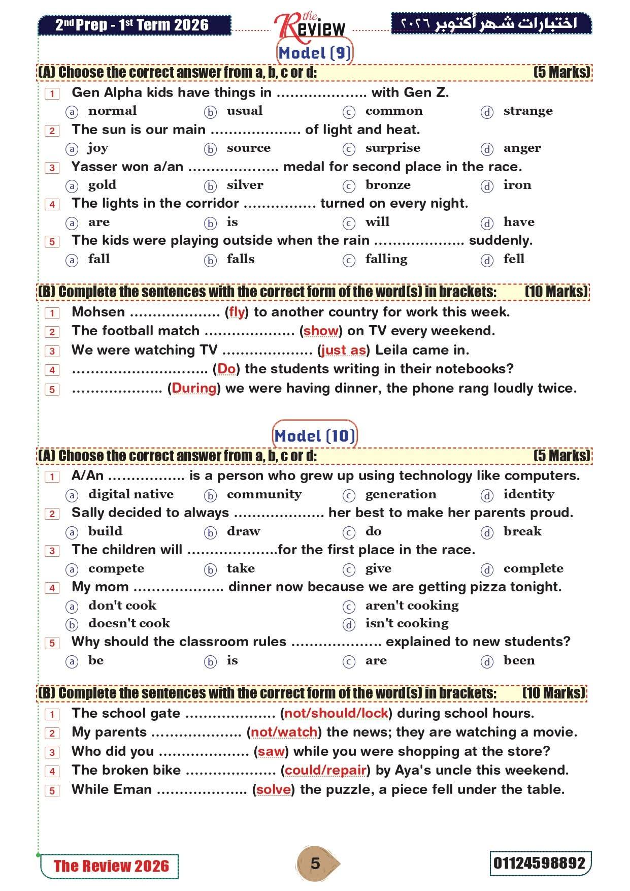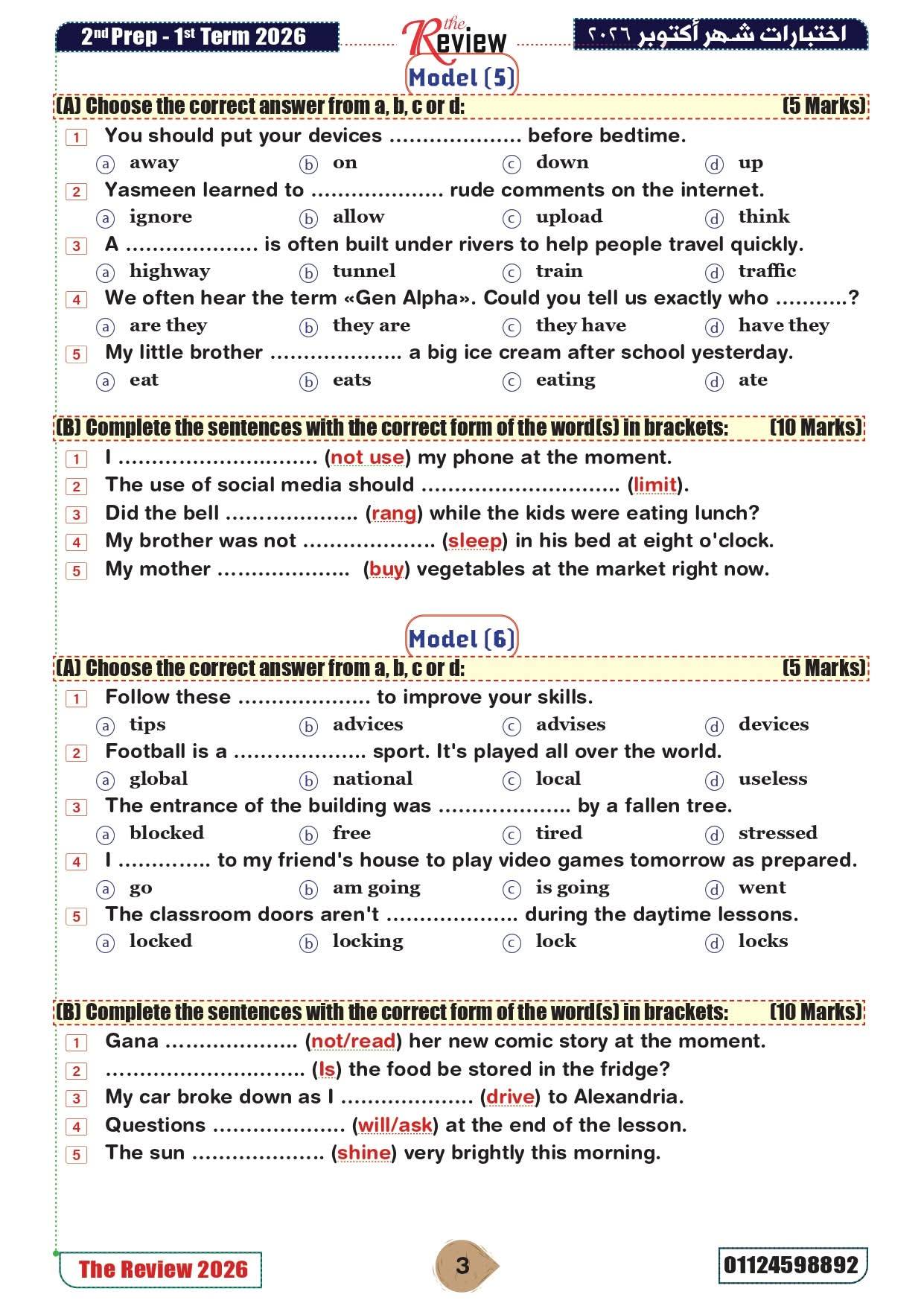 امتحان شهر أكتوبر إنجليزي ثانية إعدادي.. ويواصل موقع السبورة نشر مراجعة ليلة الامتحان من خلال تحميل مراجعة ليلة امتحان اللغة الإنجليزية لطلاب وطالبات الصف الثاني الإعدادي، من خلال مراجعات نهائيه، واستعراض 10 نماذج في اللغة الإنجليزية ترم أول 2026، وشرح مبسط، واستعراض مراجعة ليلة الامتحان في اللغة الانجليزية، عن طريق نشر العديد من الامتحانات، لطلاب وطالبات الصف الثاني الإعدادي، في مراجعات نهائيه، لن يخرج عنها امتحان آخر العام، ومن خلال متابعة مراجعات نهائيه أعدها خبراء المادة في وزارة التربية والتعليم.