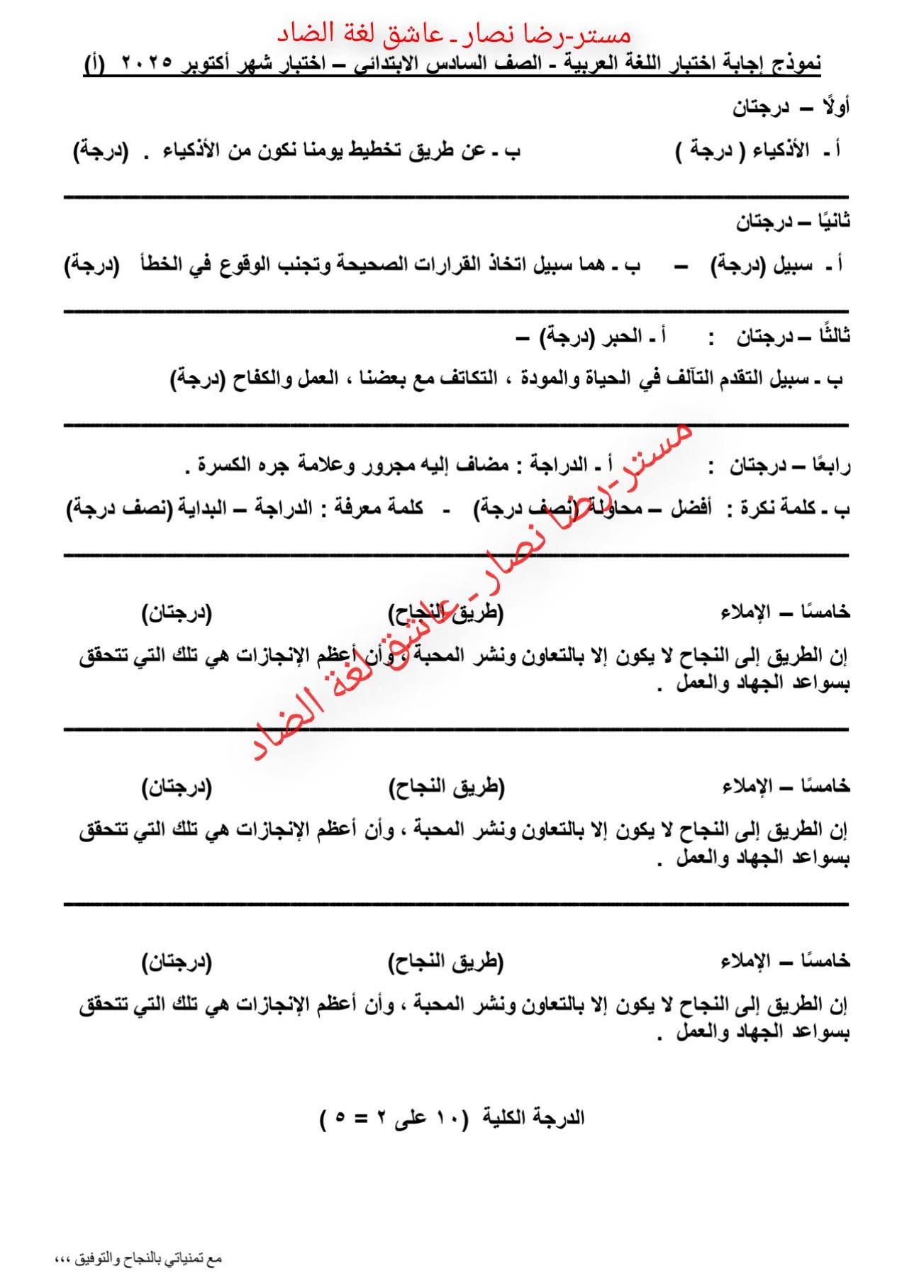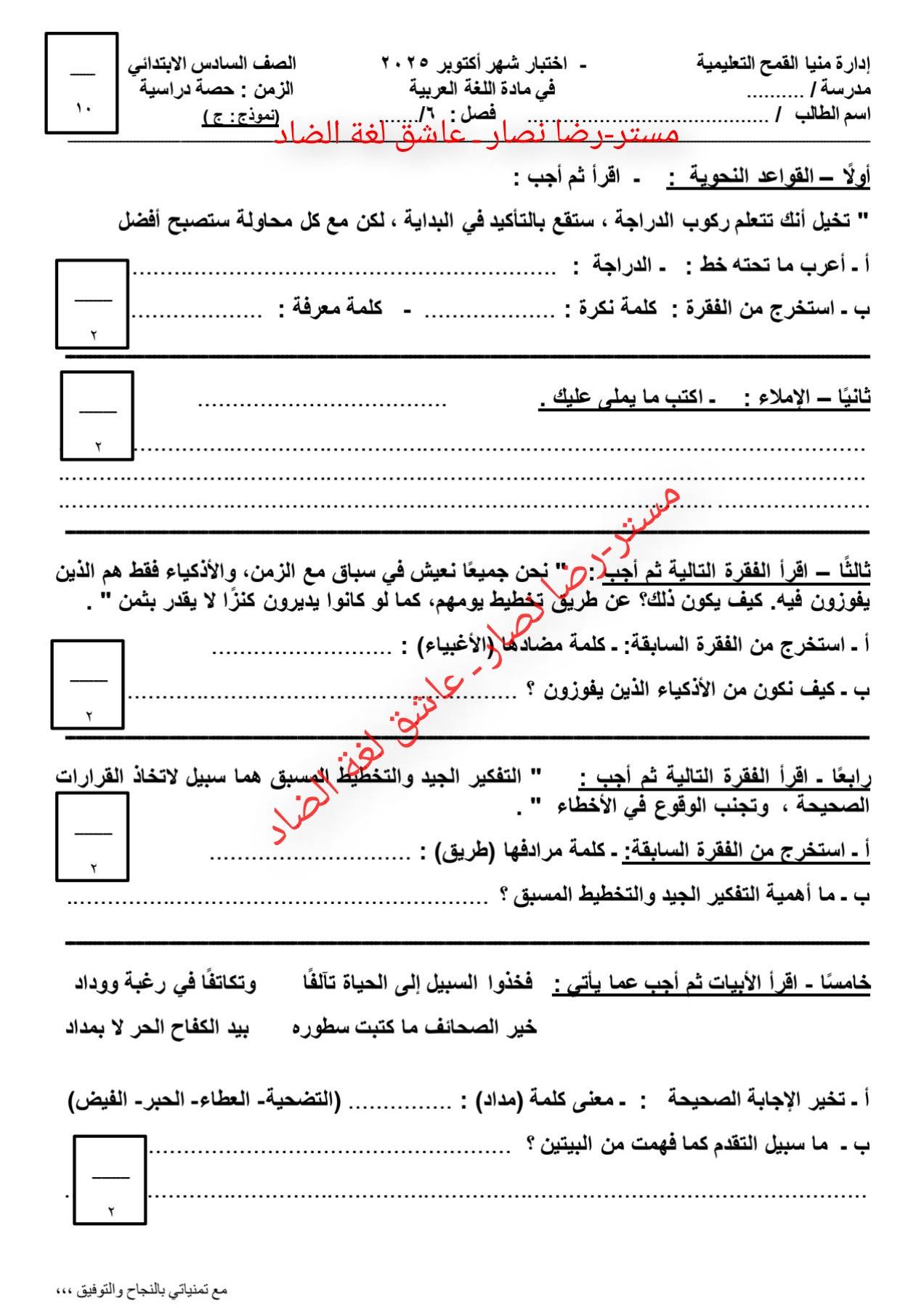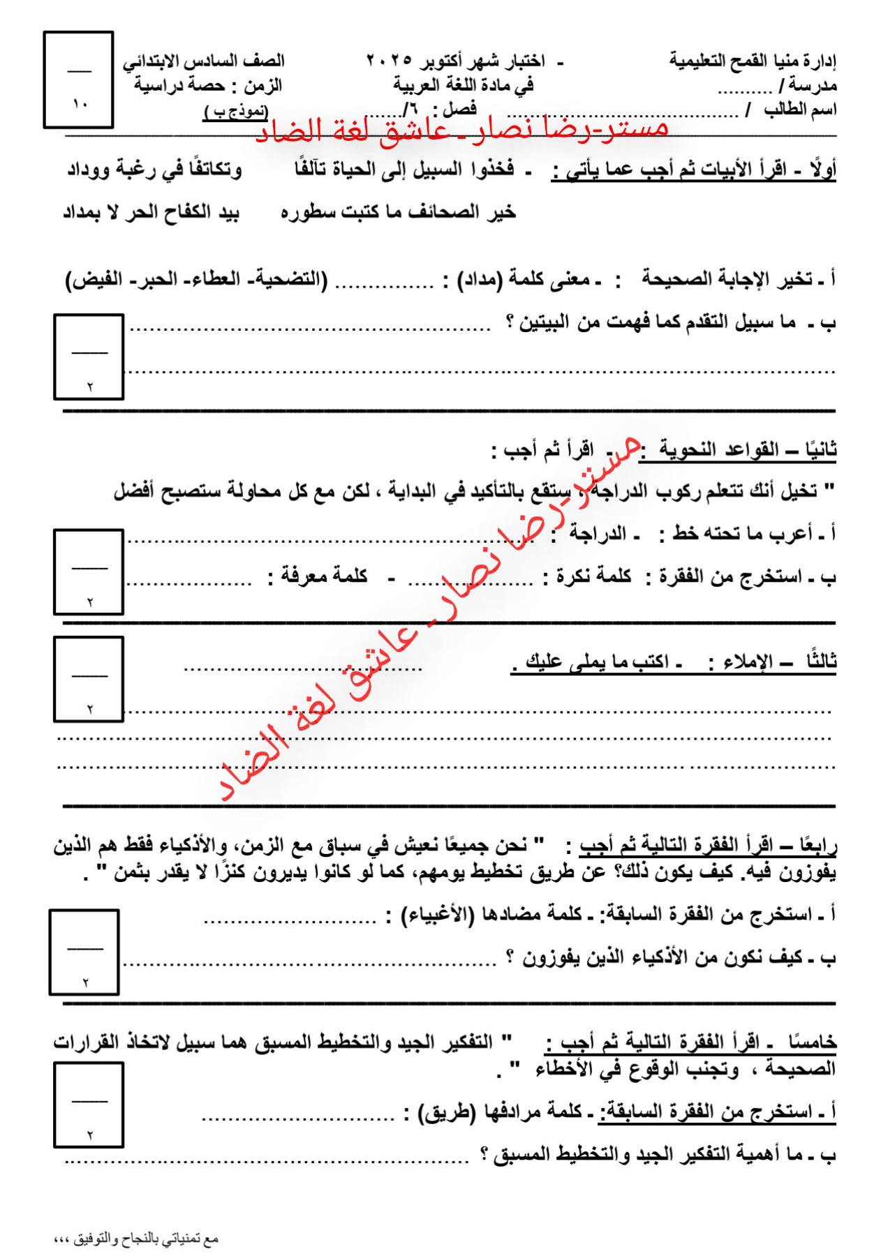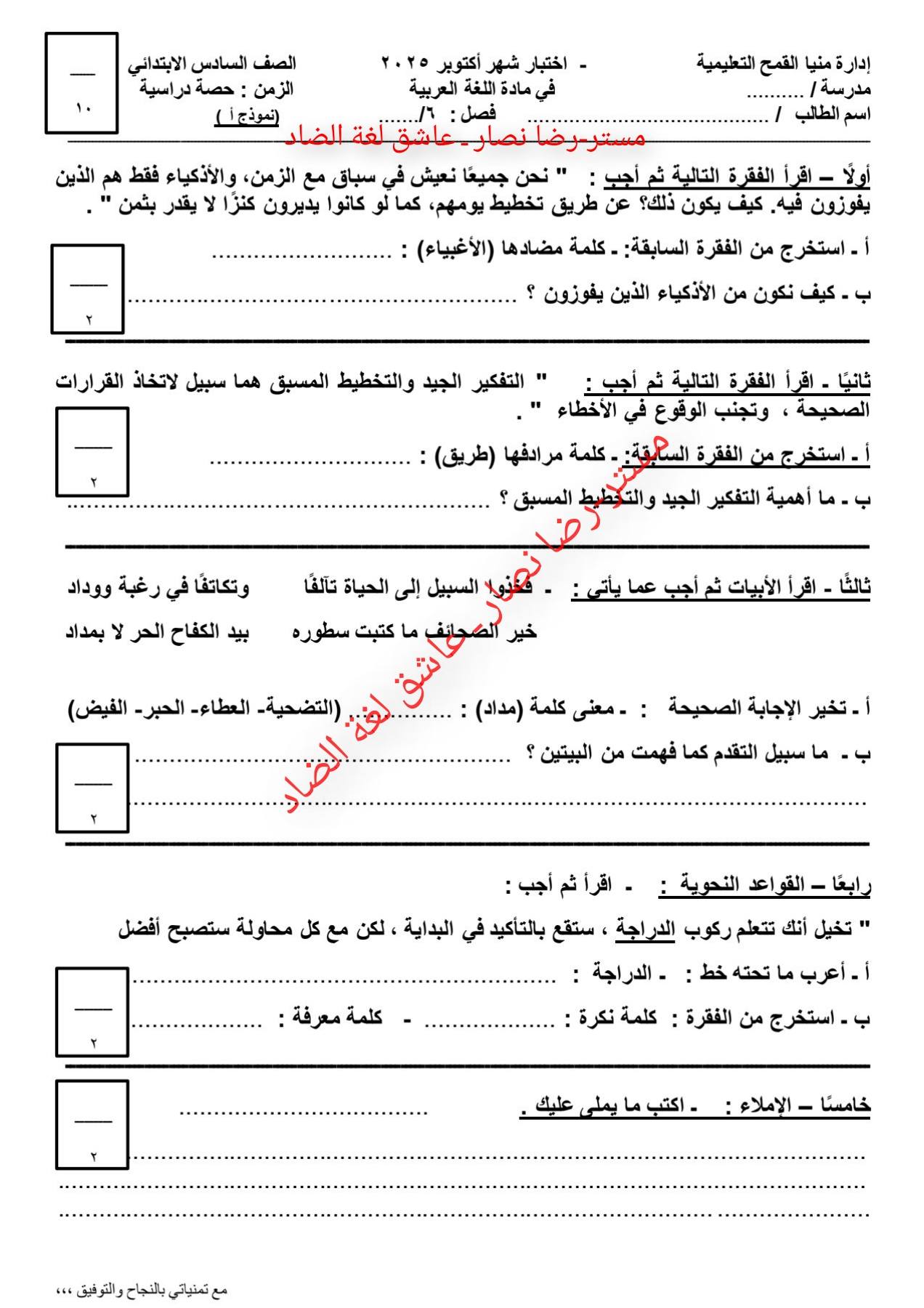 - امتحان عربي سادسة ابتدائي