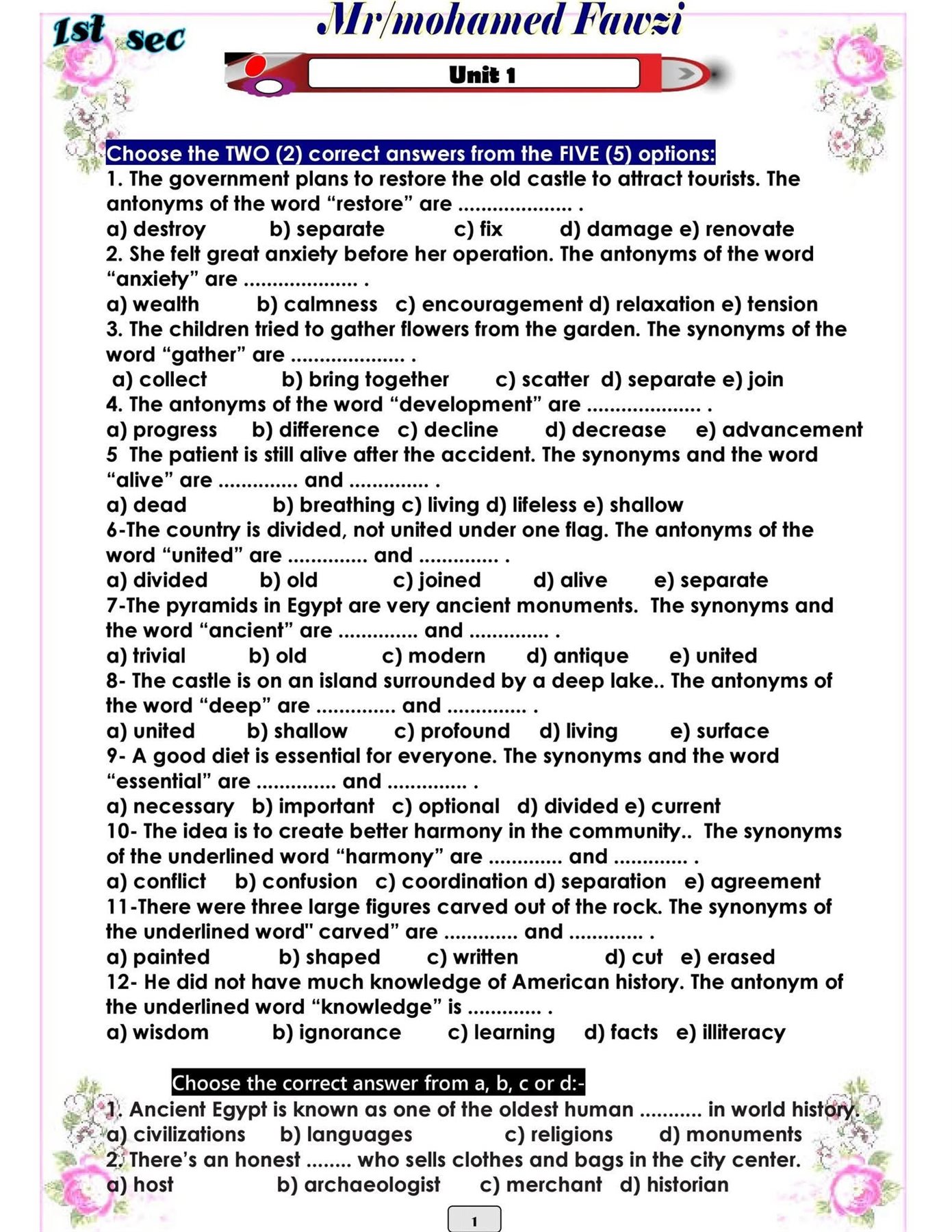 مراجعات نهائية..150 سؤالا في اللغة الانجليزية على الوحدة الأولى، تضمن لك التفوق لـ الصف الأول الثانوي، للعام الدراسي الجاري 2025-2026، في مراجعات نهائيه وتحميل 150 سؤالا في اللغة الانجليزية تضمن لك التفوق لـ الصف الأول الثانوي، حيث يواصل موقع السبورة نشر مراجعة ليلة الامتحان من خلال تحميل أبرز 150 سؤالا في اللغة الانجليزيةعلى الوحدة الأولى تضمن لك التفوق لـ الصف الأول الثانوي، من خلال مراجعات نهائيه، واستعراض جميع نظام أسئلة امتحانات اللغة الانجليزية، وشرح مبسط، واستعراض مراجعة ليلة الامتحان في اللغة الانجليزية تضمن لك التفوق لـ الصف الأول الثانوي، عن طريق نشر العديد من الامتحانات، لطلاب وطالبات الصف الأول الثانوي، في مراجعات نهائيه، لن يخرج عنها امتحان آخر العام، ومن خلال متابعة مراجعات نهائيه أعدها خبراء المادة في وزارة التربية والتعليم.