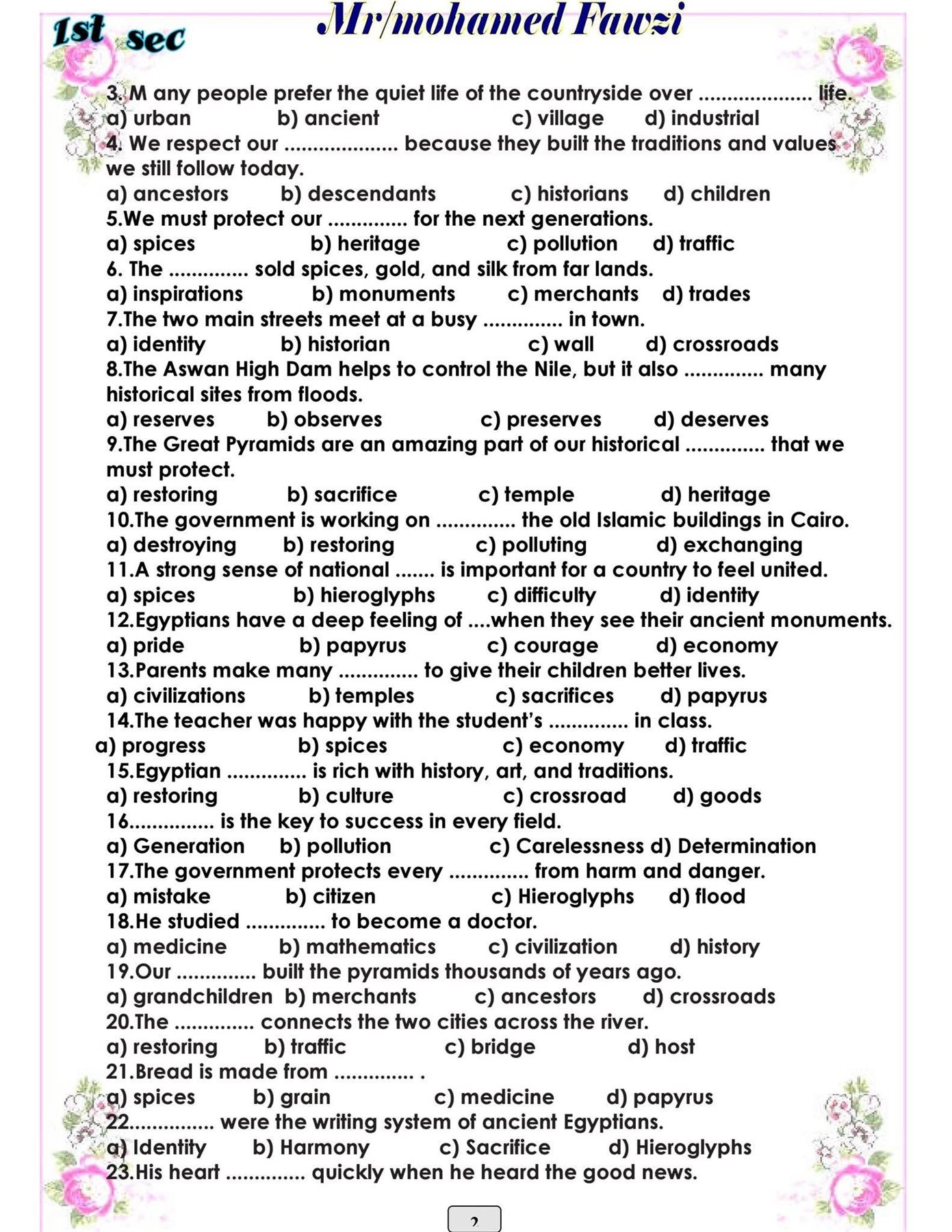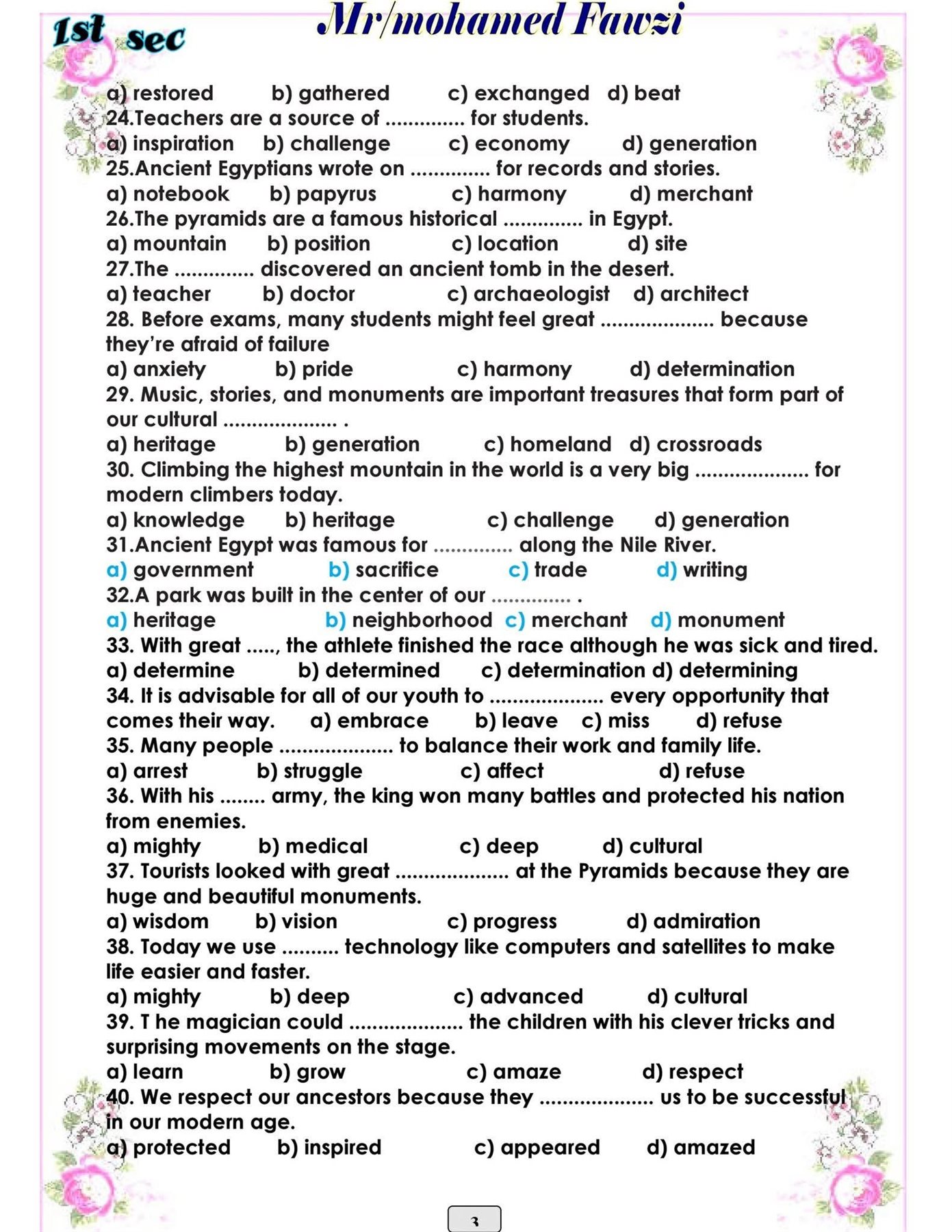 - الصف الاول الثانوى