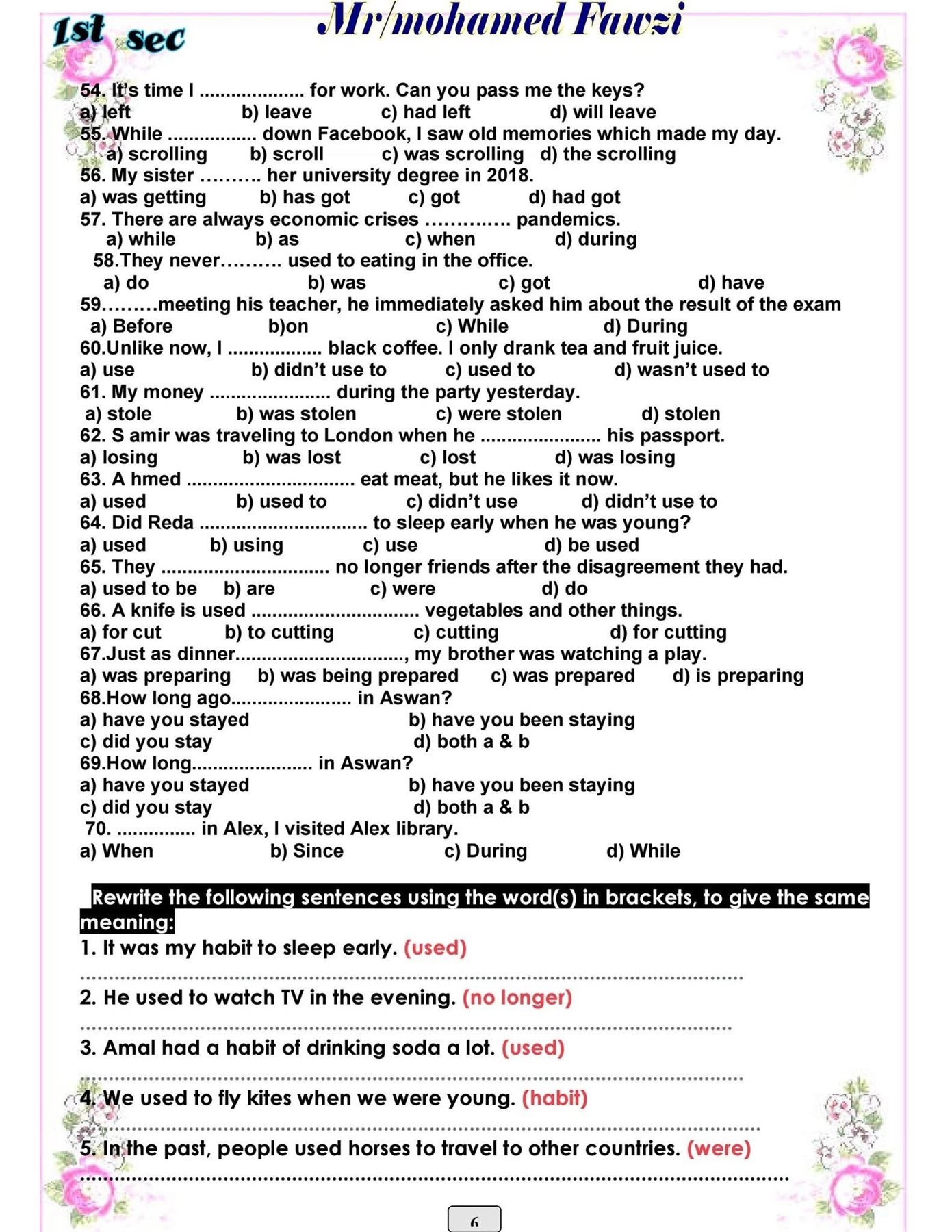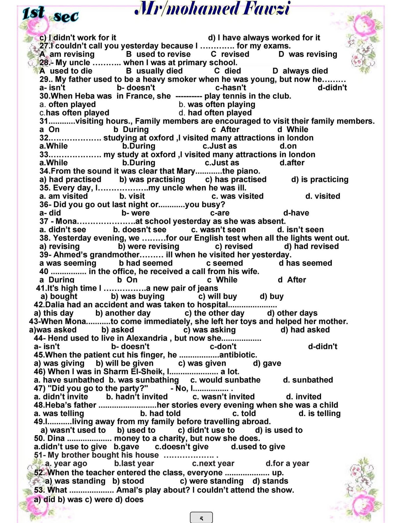 - مراجعات نهائيه امتحان اللغة الانجليزية أولى ثانوي