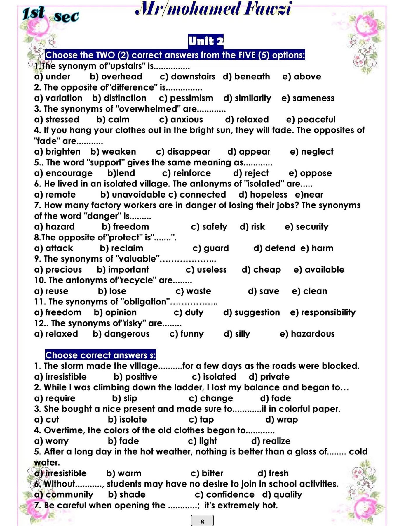 مراجعات نهائية.. 220 سؤالا في اللغة الانجليزية على الوحدة الثانية لـ أولى ثانوي