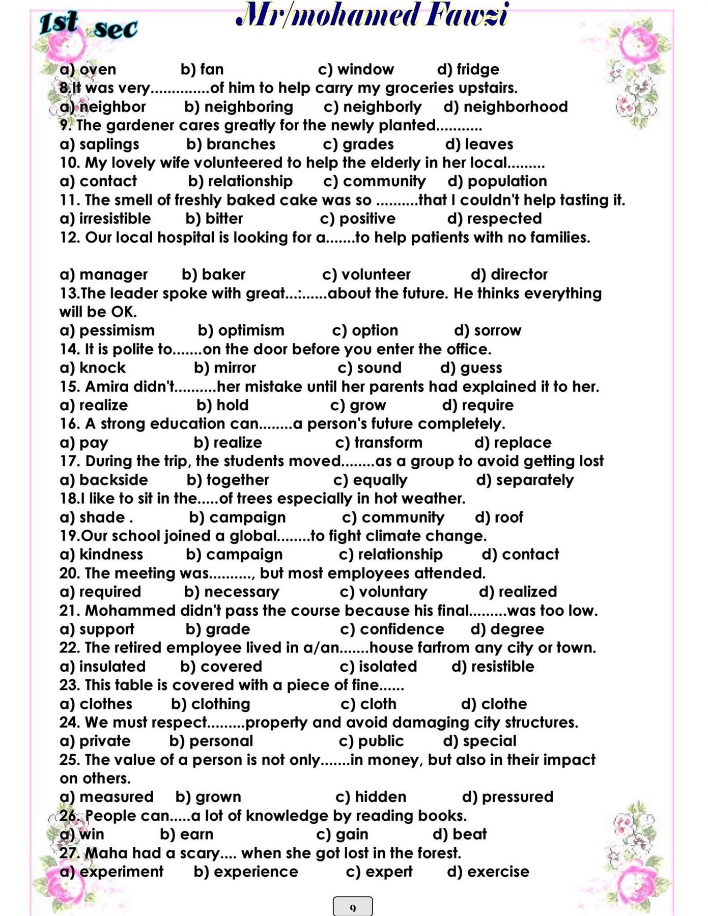 - الصف الاول الثانوى