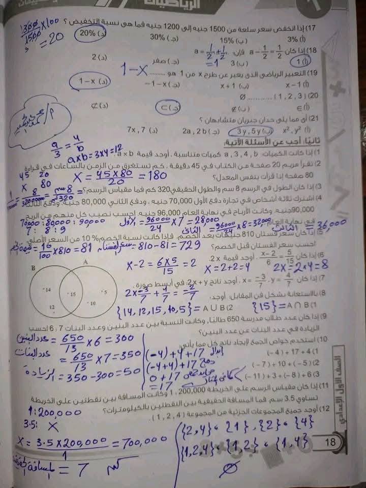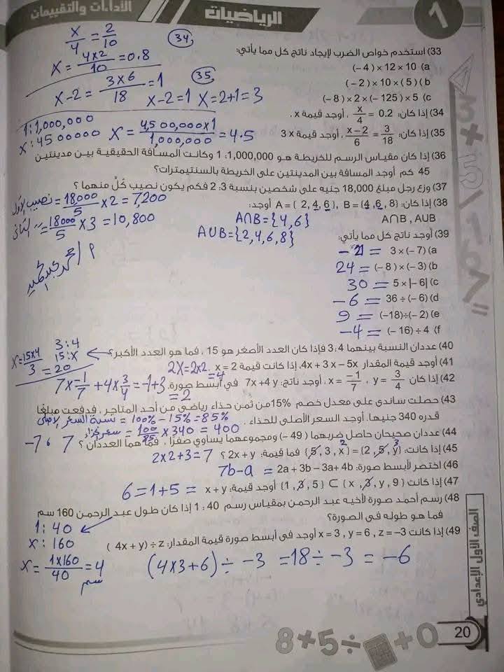 - الرياضيات الصف الأول الإعدادي