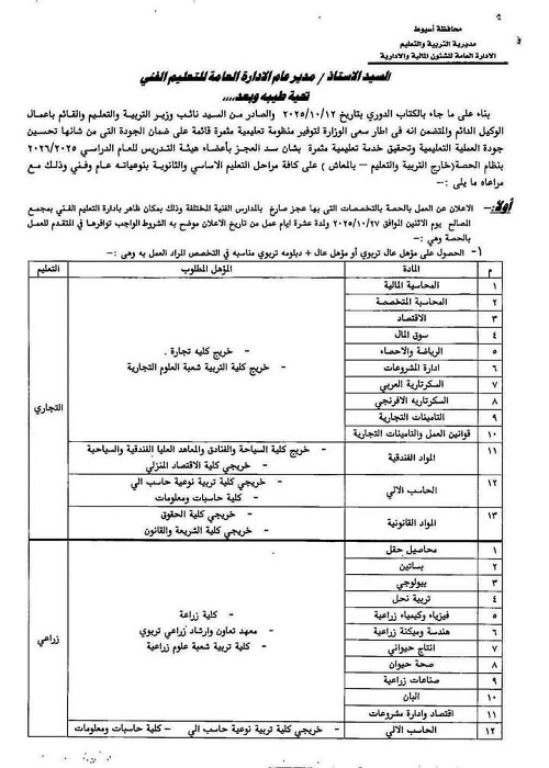 - وظائف تعليم صناعي وتجاري وزراعي