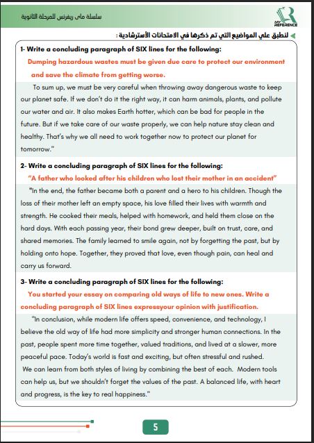 مراجعات نهائية.. وإزاي تكتب البرجراف في 5 ورقات لـ الثانوية العامة، تضمن لك دخول الامتحان وهو في جيبك، لطلاب وطالبات الثانوية العامة، من خلال إزاي تكتب البرجراف في 5 ورقات لـ الثانوية العامة، تضمن لك مراجعات نهائية، والتى تعد مرجعا أساسيا في مراجعات نهائيه، لمقرر المنهج الدراسي للعام الدراسي الجاري 2025-2026، أعدها خبراء المادة في وزارة التربية والتعليم، من أجل مراجعات نهائيه لطلاب الثانوية العامة.