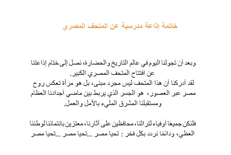 - إذاعة مدرسية عن المتحف المصري الكبير فقرة الخاتمة