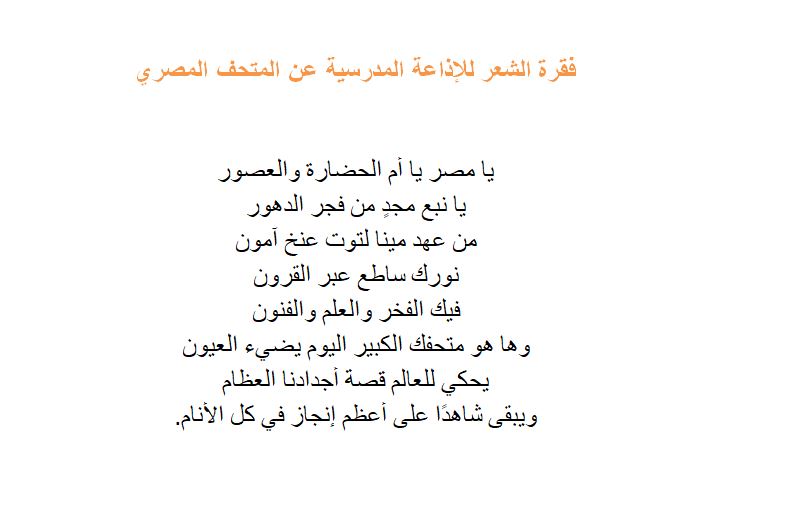 - إذاعة مدرسية عن المتحف المصري الكبير فقرة الشعر