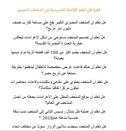 - إذاعة مدرسية عن المتحف المصري الكبير فقرة هل تعلم