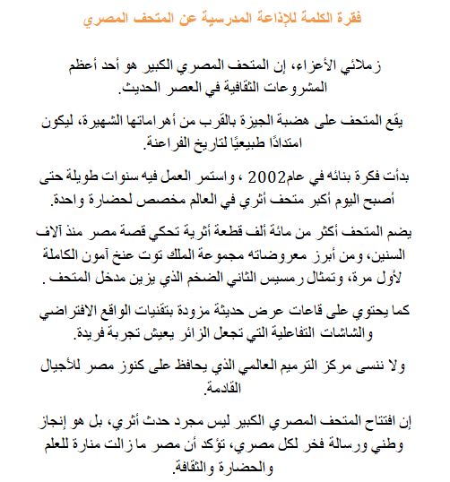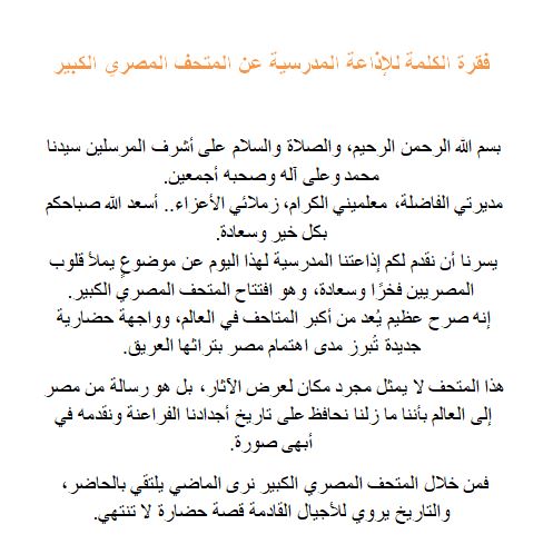 - إذاعة مدرسية عن المتحف المصري الكبير فقرة الكلمة