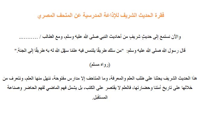 - فقرة الحديث الشريف للإذاعة المدرسية عن المتحف المصري