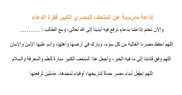 - فقرة الدعاء للإذاعة المدرسية عن المتحف المصري الكبير