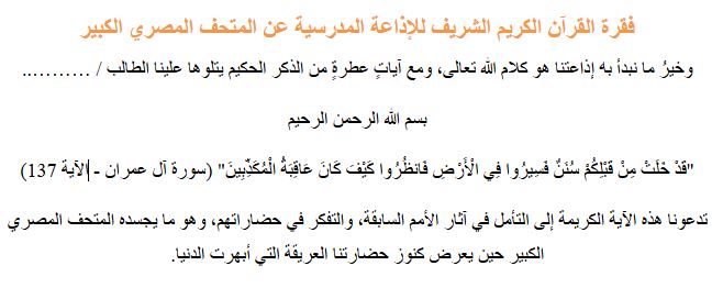 - فقرة القرآن الكريم للإذاعة المدرسية عن المتحف المصري الكبير