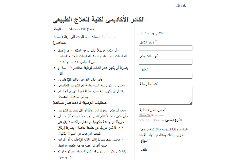 وظيفة جامعة.. أعلنت جامعة بدر عن فتح باب التقديم لشغل عدد من الوظائف الأكاديمية في كلية العلاج الطبيعي، وذلك في إطار خطتها للتوسع الأكاديمي واستقطاب الكفاءات المتميزة في مجالات التعليم العالي.