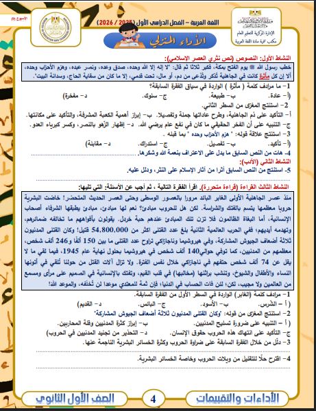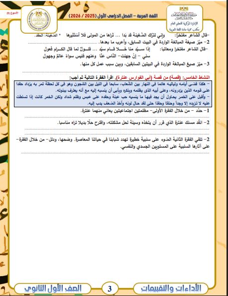 - رابط الآداء الصفي الأسبوع التاسع عربي أولى ثانوي الصف الأول الثانوي