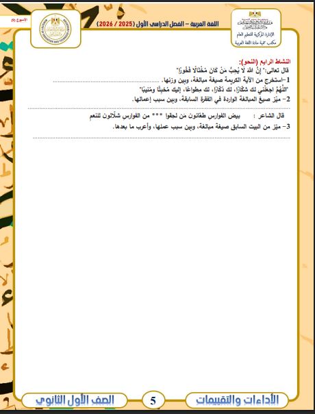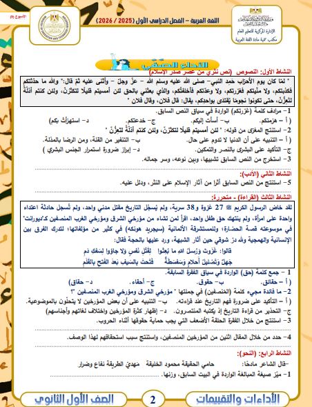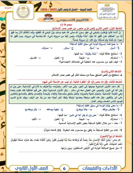 مراجعات نهائية.. أسئلة تقييم الأسبوع التاسع لغة عربية الصف الأول الثانوي، للعام الدراسي الجاري 2025-2026، في مراجعات نهائية وتحميل أسئلة تقييم الأسبوع التاسع اللغة العربية الصف الأول الثانوي، حيث يواصل موقع السبورة نشر مراجعة ليلة الامتحان من خلال تحميل أقوى أسئلة تقييم الأسبوع التاسع اللغة العربية الصف الأول الثانوي، من خلال مراجعات نهائيه، واستعراض جميع نظام أسئلة امتحانات اللغة العربية، وشرح مبسط، واستعراض لجميع أسئلة مادة اللغة العربية، عن طريق نشر العديد من الامتحانات، لطلاب وطالبات الصف الأول الثانوي، في مراجعات نهائية، لن يخرج عنها امتحان آخر العام، ومن خلال متابعة مراجعات نهائية أعدها خبراء المادة في وزارة التربية والتعليم.