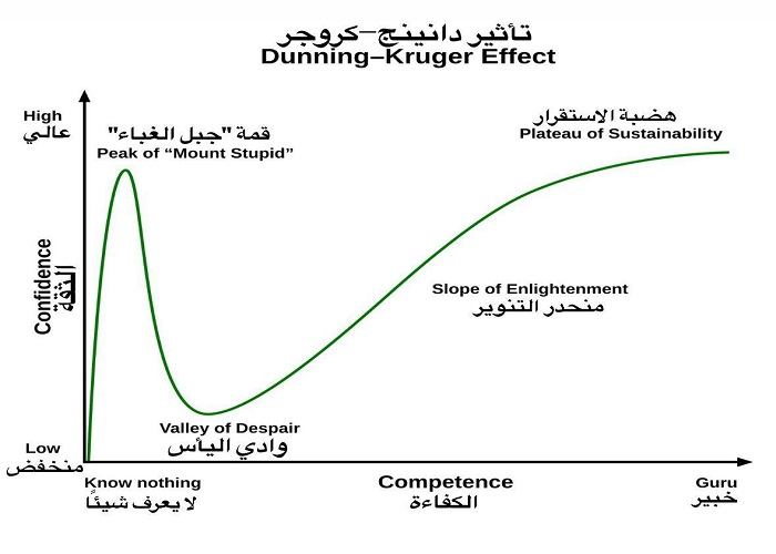 - علاقة الثقة الزائدة بالجهل ر مراحل منحنى دانينج–كروجر في التعلم